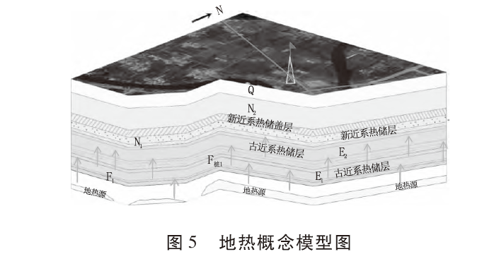勘查區(qū)總體屬于地?zé)嵴^(qū),熱源來自上地幔。同時,由于勘查區(qū)與相鄰地區(qū)相比莫霍面相對較淺,對地幔熱能的傳遞較為有利;其基底起伏及斷裂構(gòu)造分布有利于地球內(nèi)熱能向勘查評價(jià)的熱儲層傳遞。